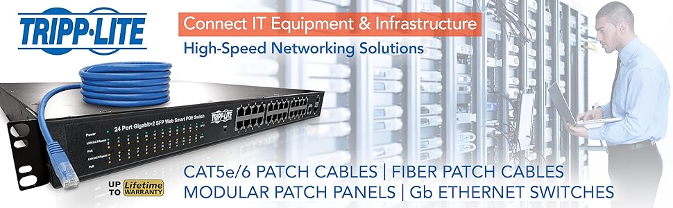 Cada conector de este cable incorpora una pestaña de presión/tracción para facilitar el acceso en aplicaciones de alta densidad. Estas prácticas pestañas permiten instalar y extraer los cables fácilmente con una sola mano, sin necesidad de herramientas adicionales.
