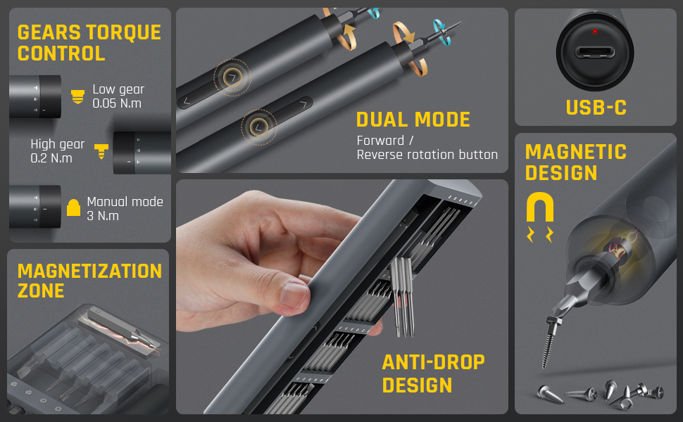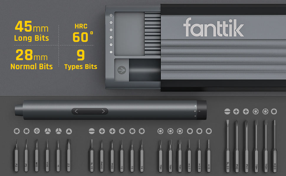 Fanttik Mini Electric Screwdriver, Precision Screwdriver Set with 24 Magnetic Precision Bits, 2 Gears Torque, Cordless, Repair Tool Set for Phone Camera Laptop Watch- E1 PRO
